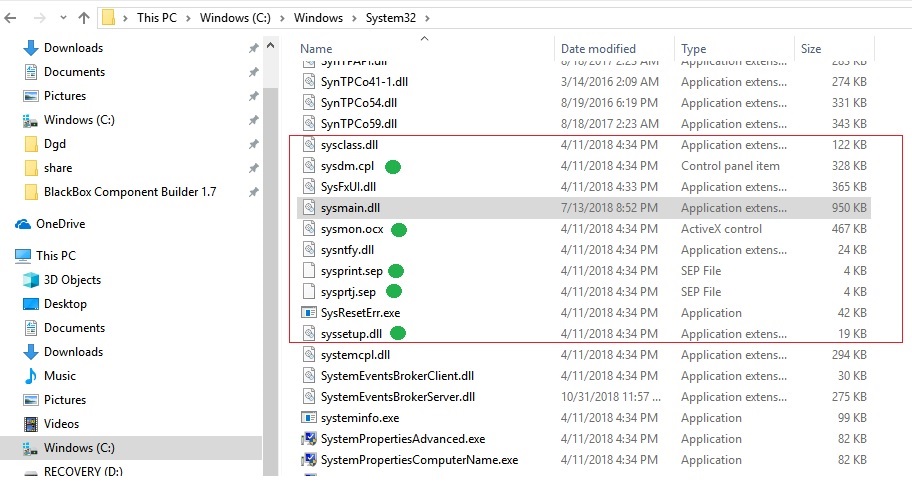 Windows has 34 files beginning "Sys", BlackBox has 19.